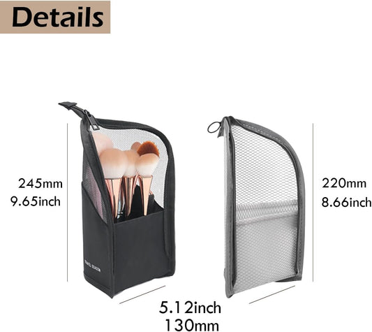 Makeup Brush Holder, Travel Makeup Brush Case Waterproof Toiletry Bag Stand-Up Makeup Organizer Mesh Cosmetic Bags with Zipper Grey